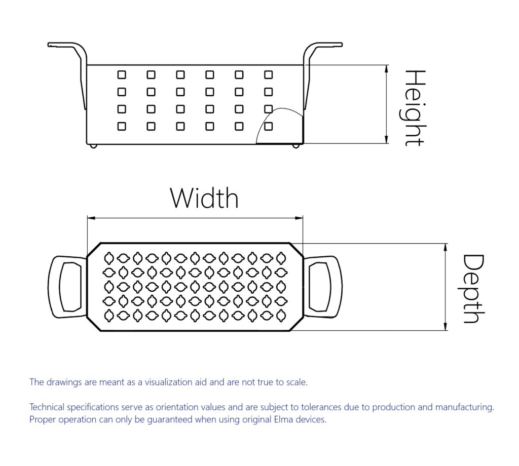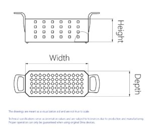 Interne afmetingen van de mand in mm (B x D x H): 190 x 105 x 95 mm
