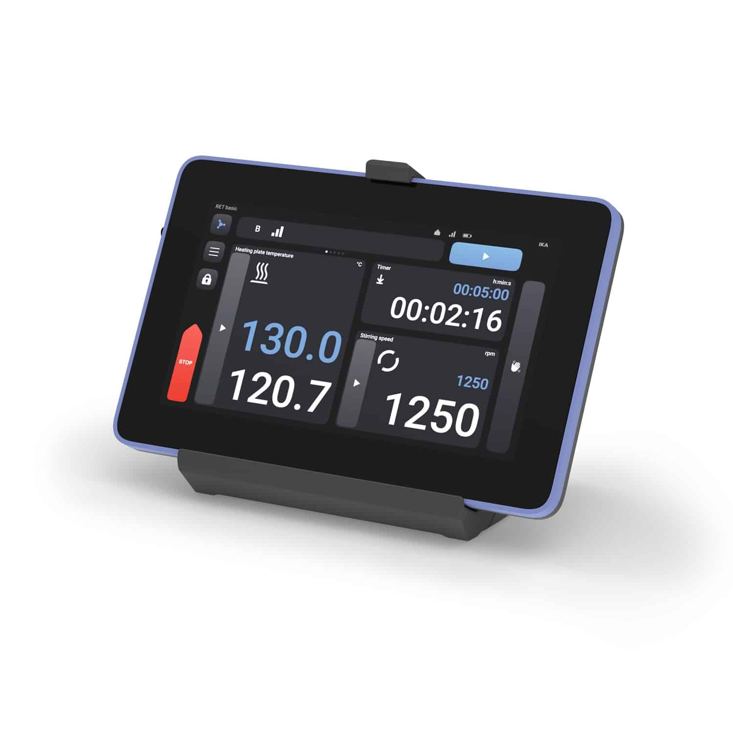 The HUB.DS docking station enables secure and stable mounting of the IKA HUB while simultaneously charging its battery – ensuring reliable, ready to use operation at all times
