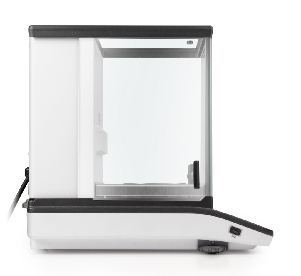 Premium analyseweegschaal met automatische schuifdeuren en de nieuwste single-cell generatie voor extreem snelle en stabiele weegresultaten