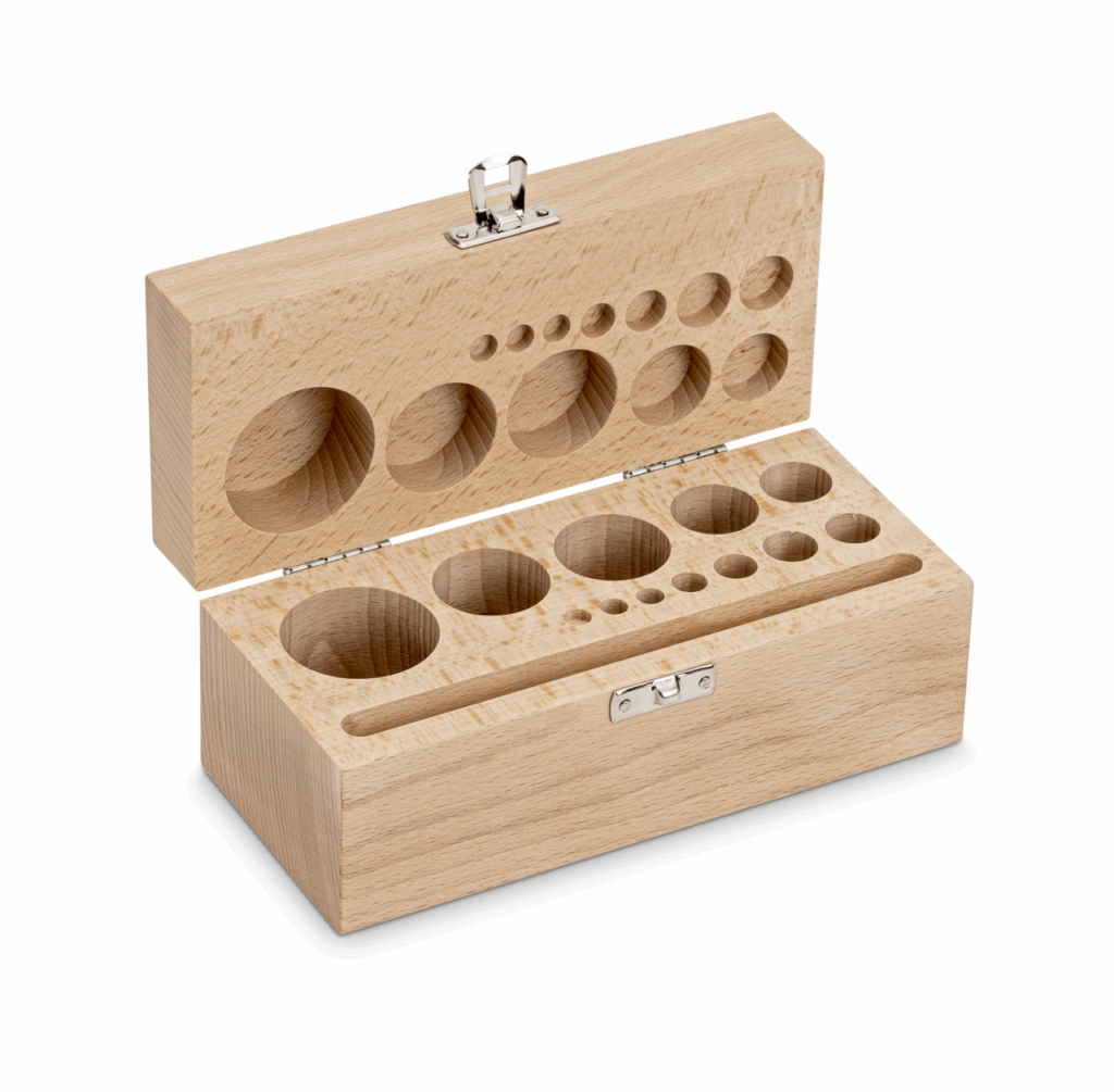 F2 + M1 + M2 + M3 Houten etui voor Milligramgewichten 1 g - 500 g