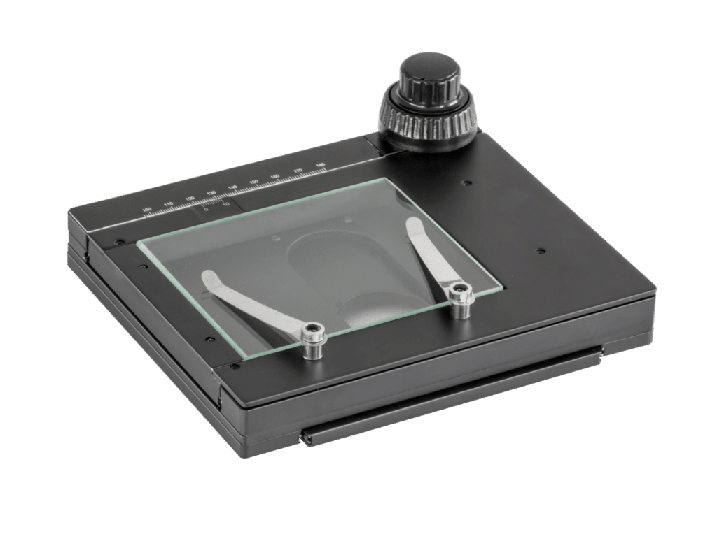 Mechanische objecttafel afmetingen B×D 188×160 mm, weg: 76x65 mm, (Opvallend licht) + (Doorverlichting)