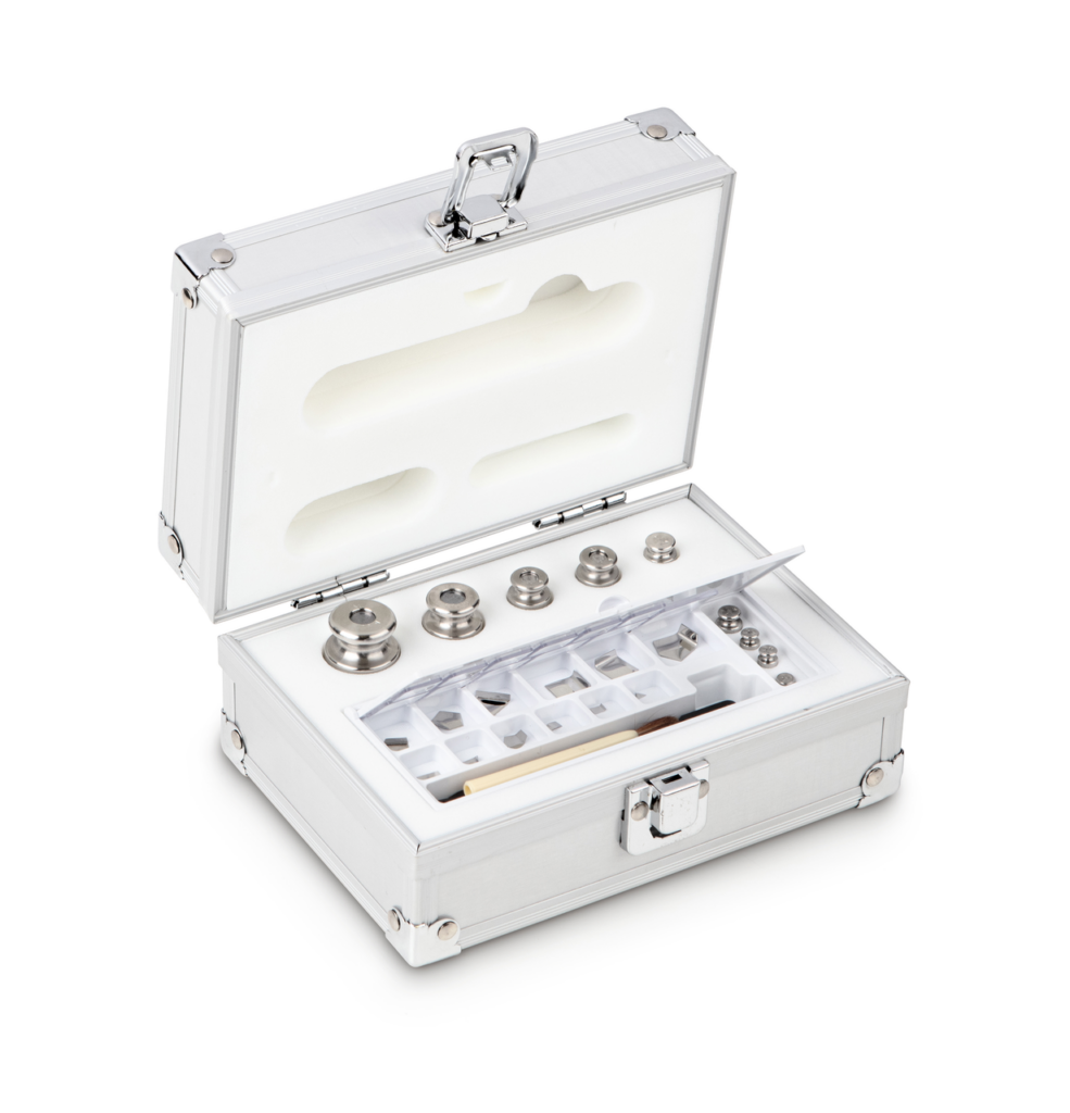 Gewichtenset, M1, 1 mg - 100 g, Knop, roestvrij staal fijn gedraaid (OIML), in aluminium behuizing