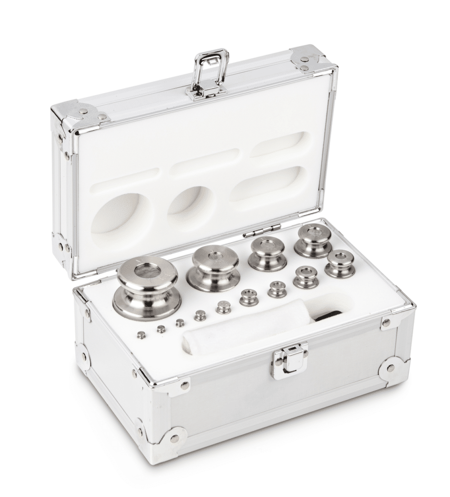 Gewichtenset, M1, 1 g - 1 kg, Knop, roestvrij staal fijn gedraaid (OIML), in aluminium behuizing