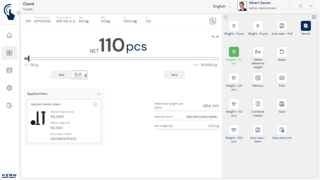 KERN Software EasyTouch SET-35 Assembly Count