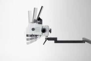 Het geïntegreerde universele statief met scharnierarm biedt flexibiliteit bij het werken met een grote verscheidenheid aan monsters, ook mochten ze zich op grotere afstand bevinden. De microscoop kan ook opzij worden geschoven om ruimte te creëren als dat nodig is