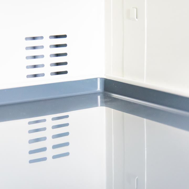 Ventilatie: Luchtinlaat met rooster onderaan de deuren, luchtuitlaat aan de bovenkant