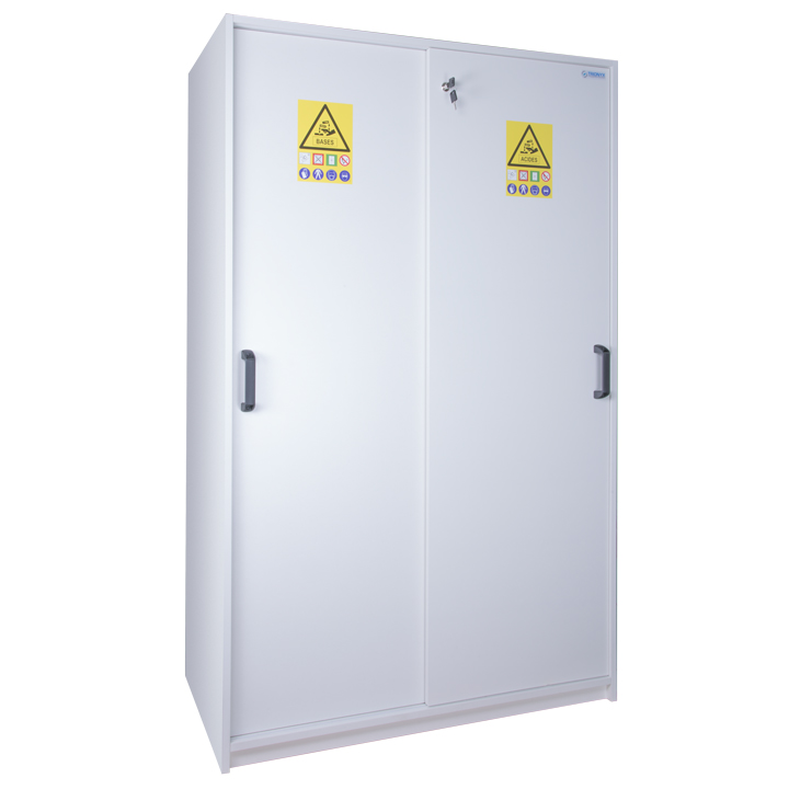 Kast met opbergvakken voor de veilige scheiding van zuren en basen
