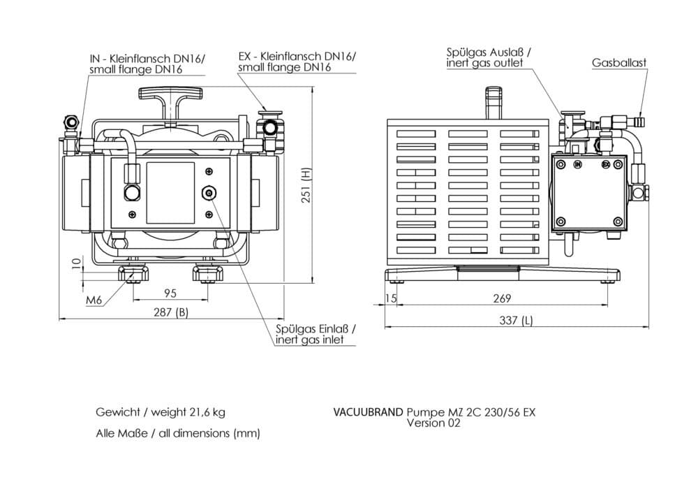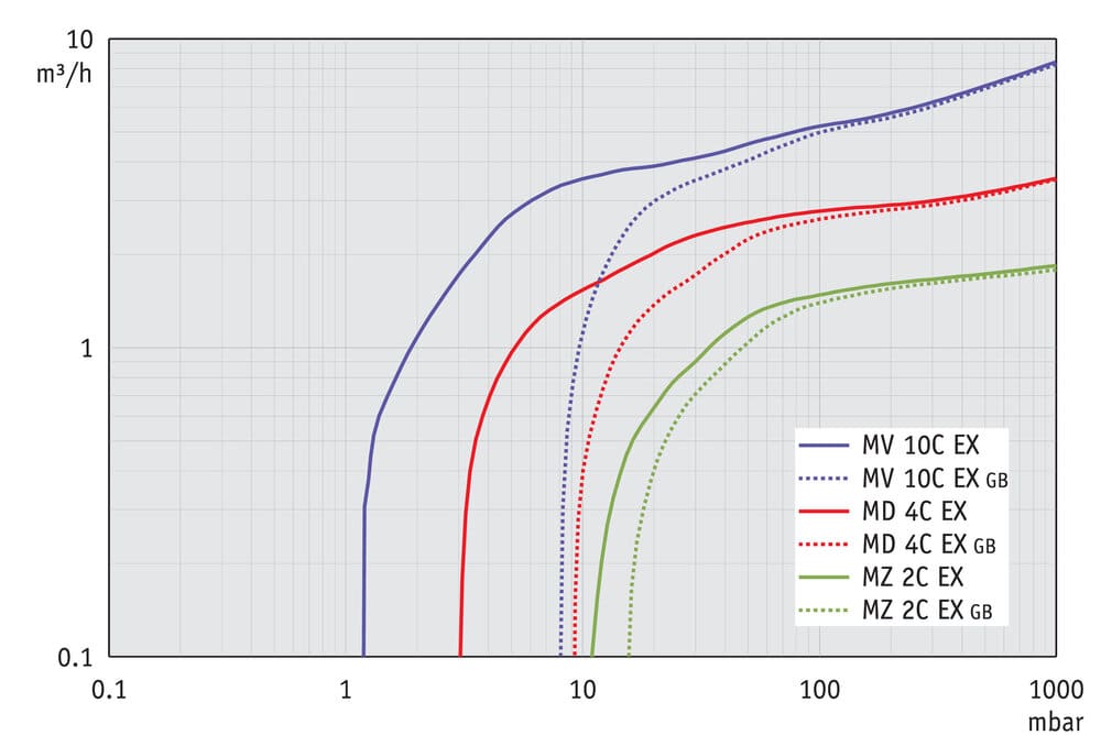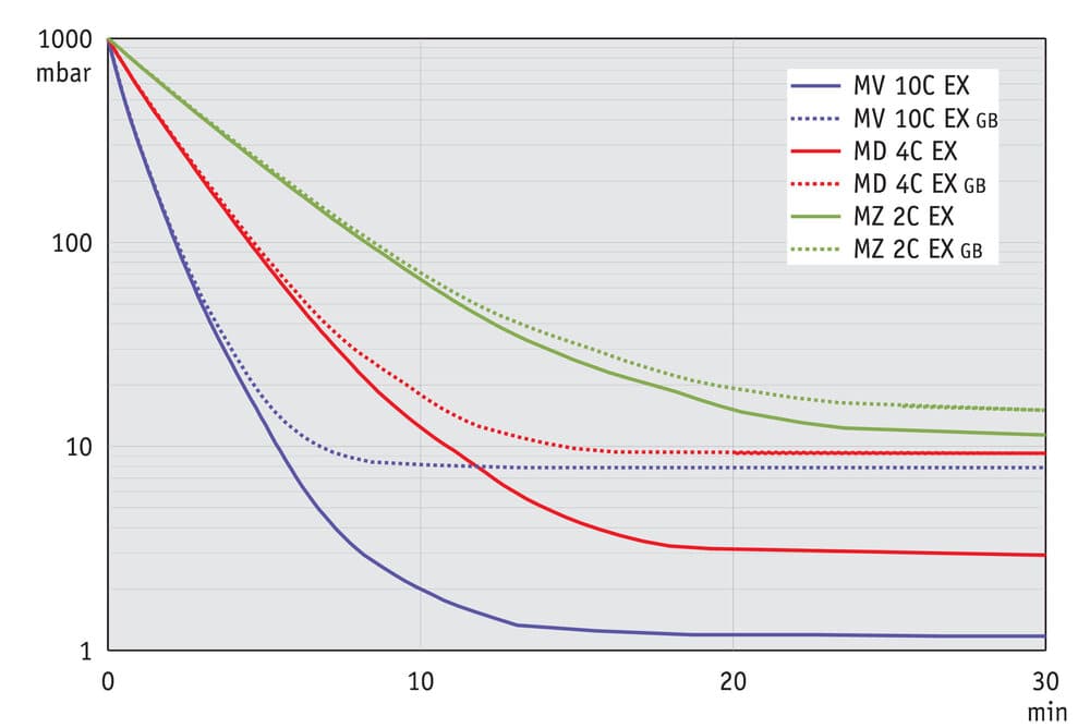 | ATEX-conformiteit | Pompkamer (gepompte gassen) = II 2G Ex h IIC T3 Gb X | Omgeving met inert spoelgas = II 2G Ex h IIB T4 Gb X | Omgeving zonder inert spoelgas = II 3G Ex h IIB T4 Gc X | Motor = II 2G Ex db IIB T4 Gb |