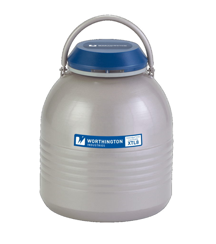 De XTL8 cryo-container heeft een volume van 8 liter en een werktijd van 50 dagen